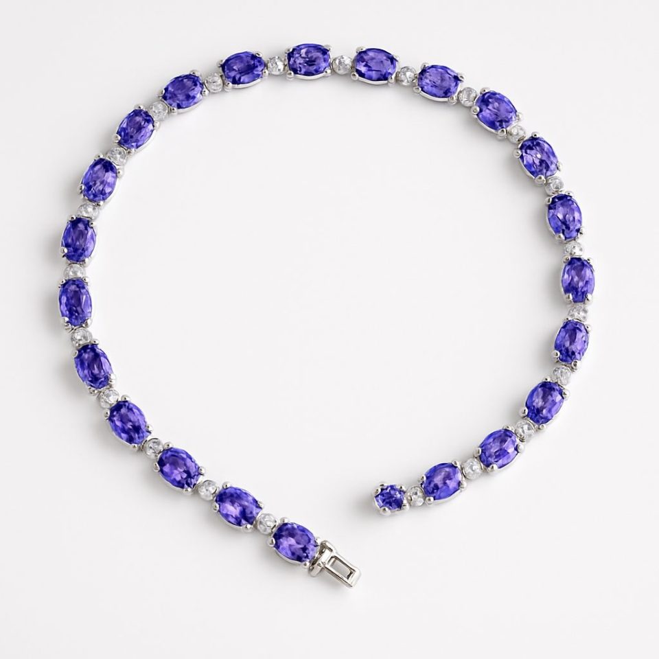 10K White Gold Tanzanite and Diamond Tennis Bracelet