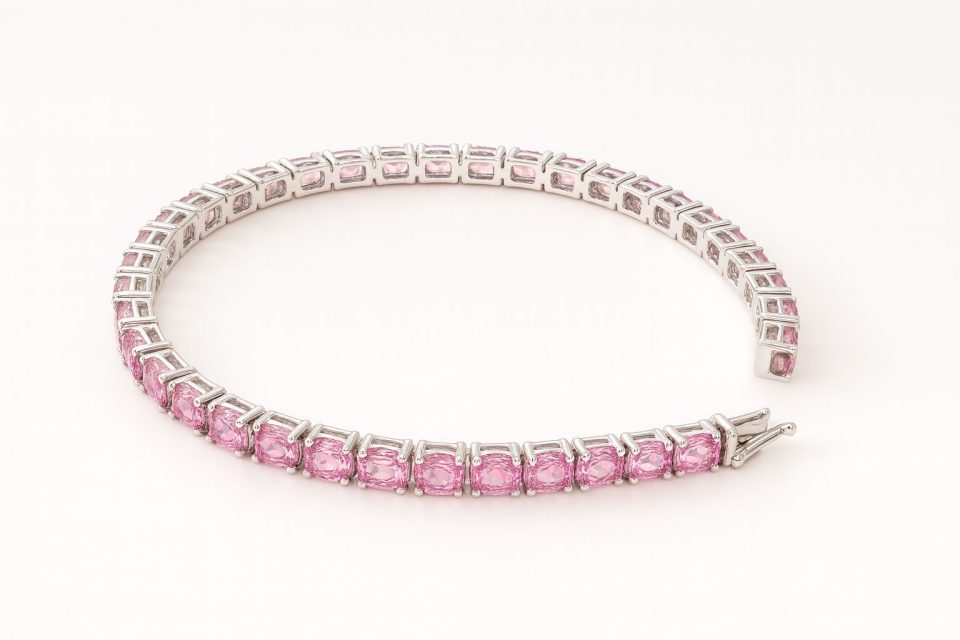 925 Silver 8.84 Ct Pink Sapphire Tennis Bracelet