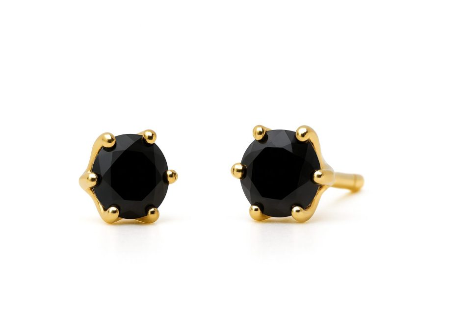 9K Yellow Gold 0.88 Ct Black Diamond Studs