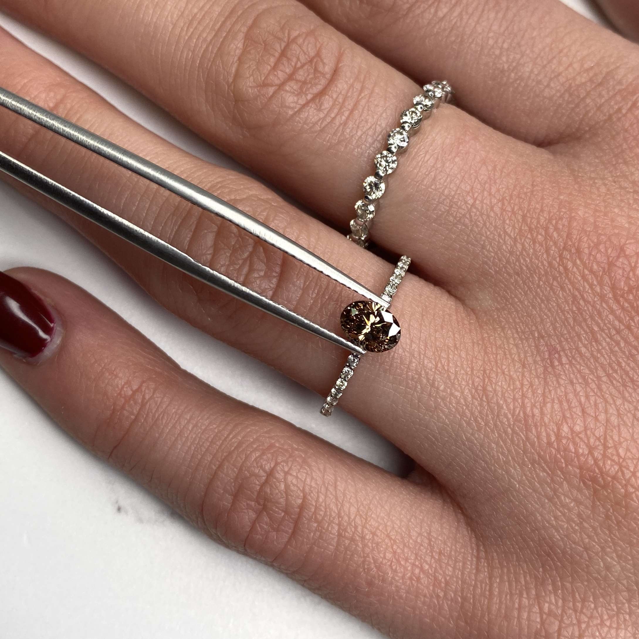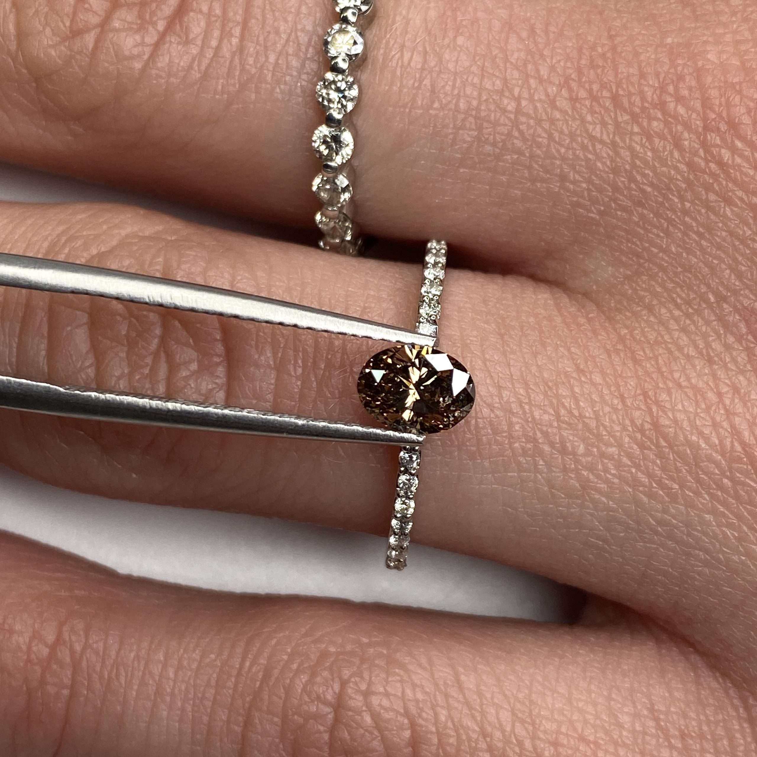 Introducing the 0.54 Ct Fancy Cognac/SI3 Oval Diamond—a captivating and warm-toned gem that brings a touch of richness and elegance to your jewellery collection.