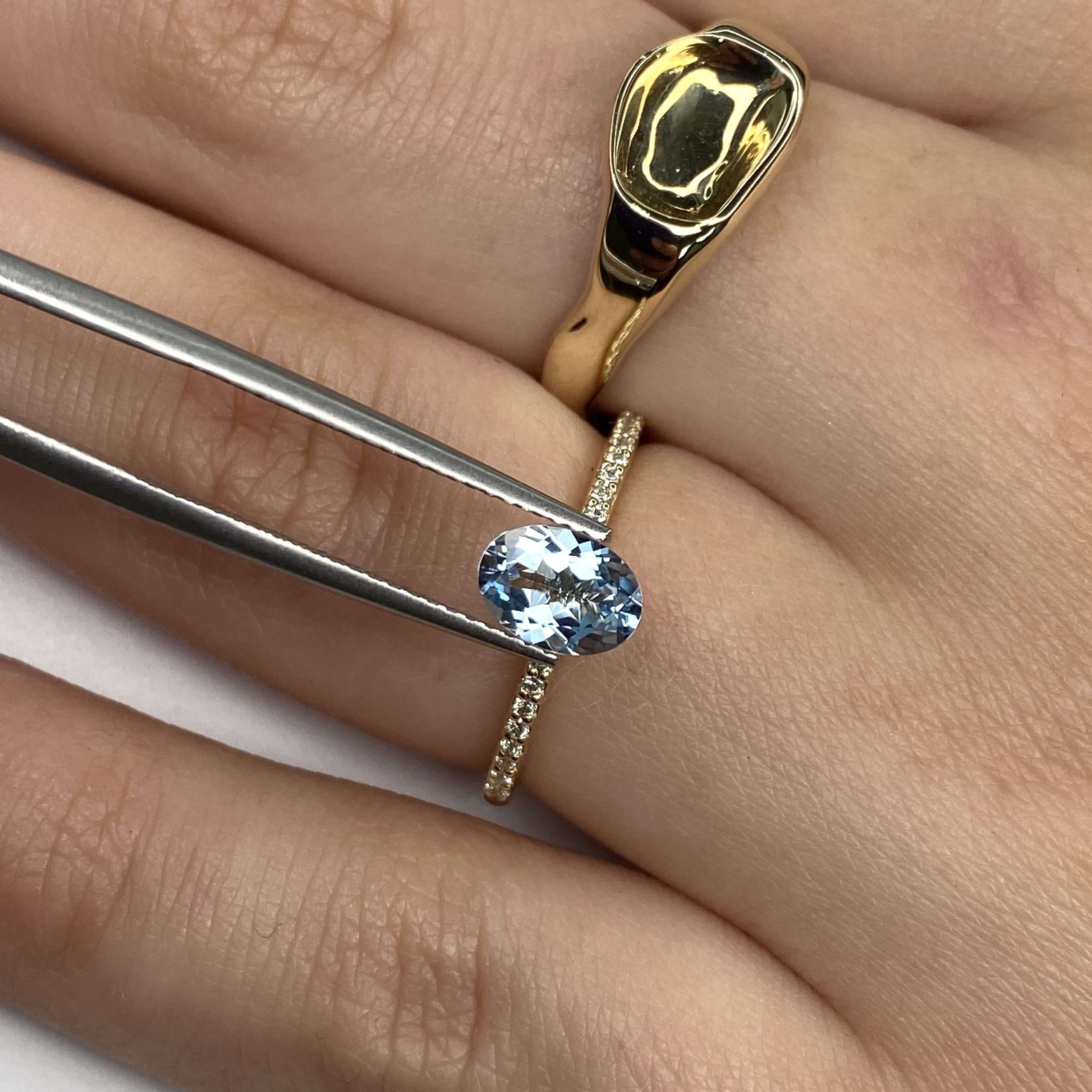 The oval cut enhances the aquamarine’s natural brilliance while creating a soft, elongated silhouette that complements a wide range of jewellery designs. Weighing 0.65 carats and measuring approximately 7.05 x 5.07 x 3.10mm, this gemstone offers a delicate yet noticeable presence.