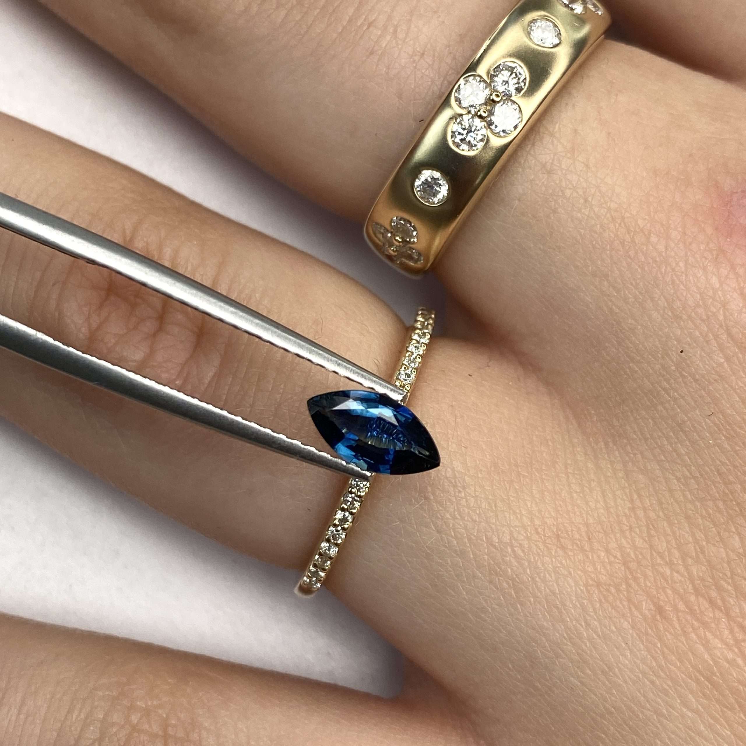The 0.67ct Marquise Blue Sapphire is a beautifully distinctive gemstone that combines elegant design with vibrant colour. Sapphires are celebrated for their durability and timeless appeal, making them a cherished choice for fine jewellery.