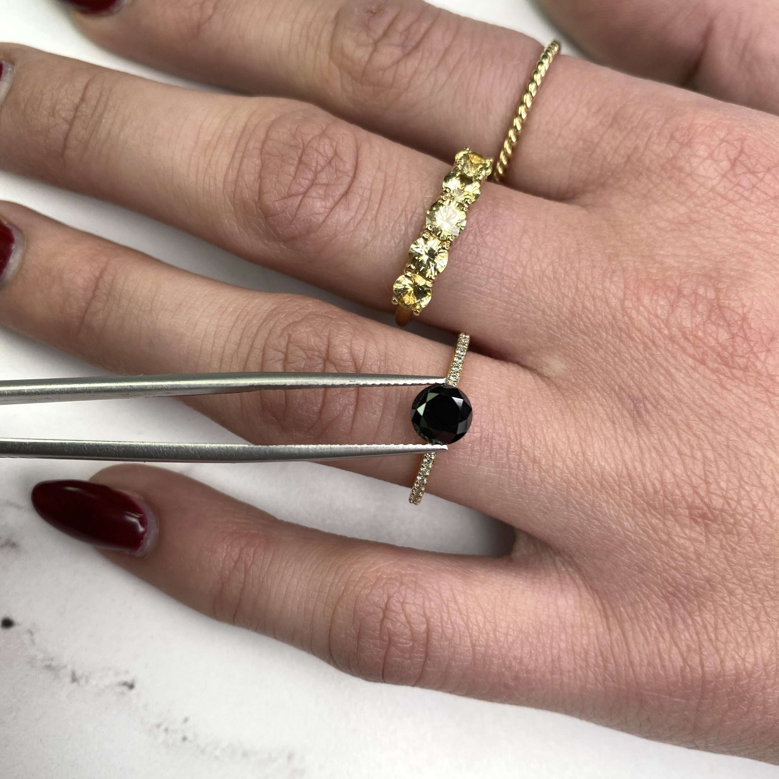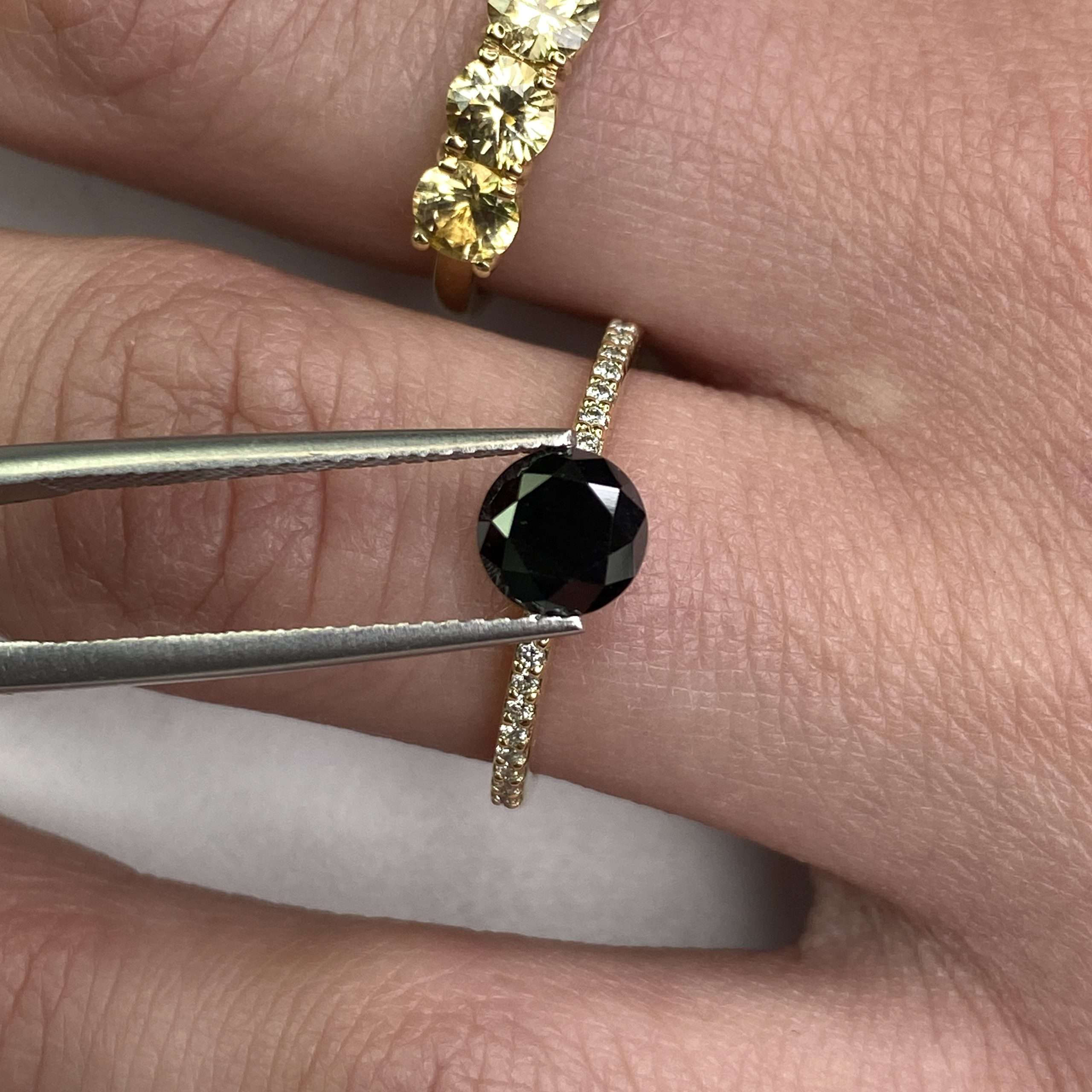 This diamond has been treated to achieve its rich, lustrous black hue, creating a deep colour that stands out beautifully in both contemporary and classic jewellery designs. The round cut provides balanced proportions and a timeless appearance, making it one of the most versatile diamond shapes for fine jewellery.