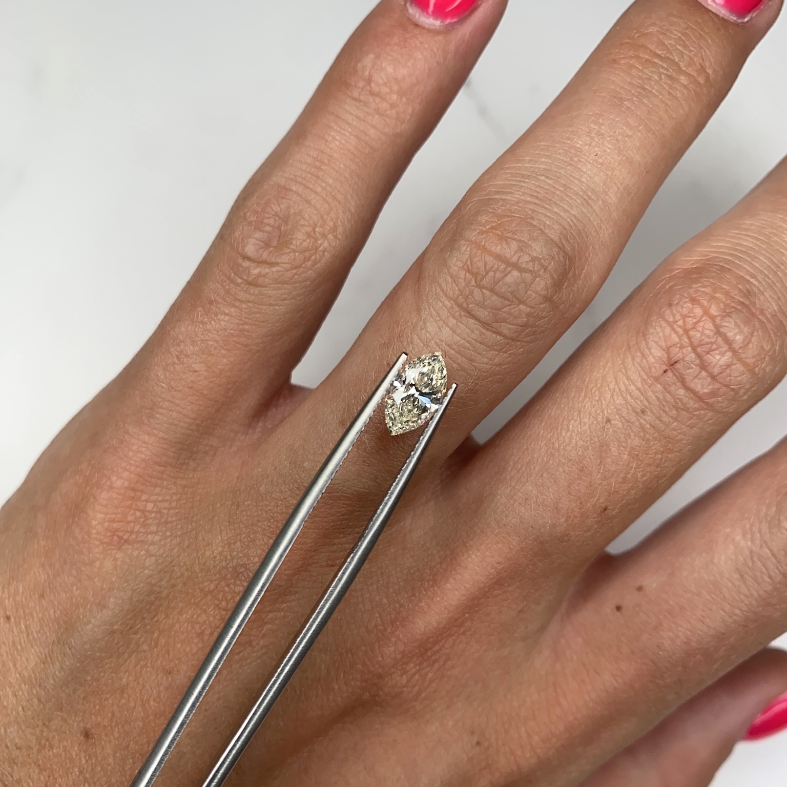 The marquise cut is known for its elongated shape and pointed ends, designed to maximise surface area and create the illusion of a larger diamond. This cut enhances finger length and provides a refined, elegant silhouette. Weighing 1.02 Ct and measuring approximately 9.29 x 5.13 x 3.49mm, this diamond delivers a bold yet sophisticated presence.