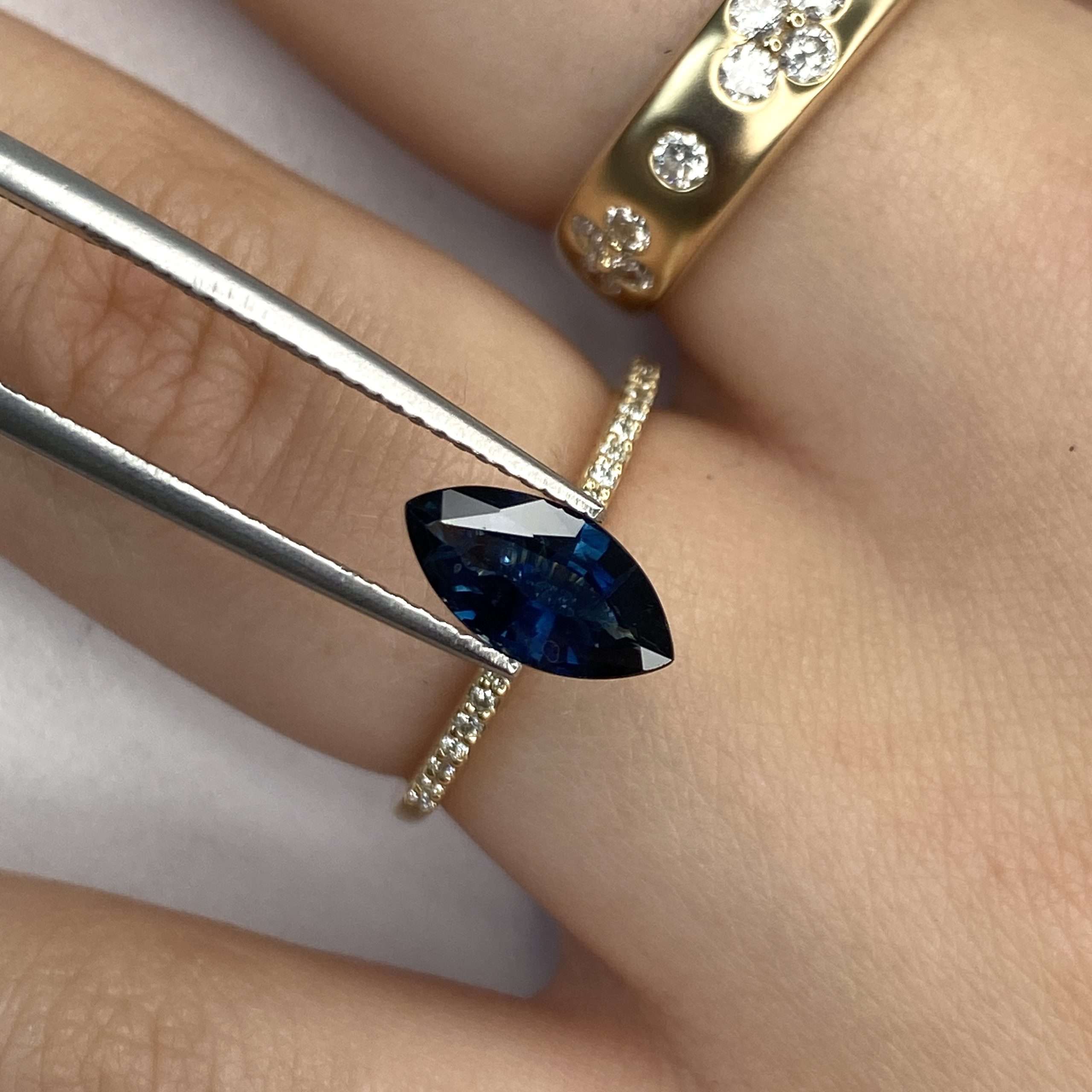 The 1.14ct Marquise Blue Sapphire is a beautifully distinctive gemstone that combines elegant design with vibrant colour. Sapphires are celebrated for their durability and timeless appeal, making them a cherished choice for fine jewellery.