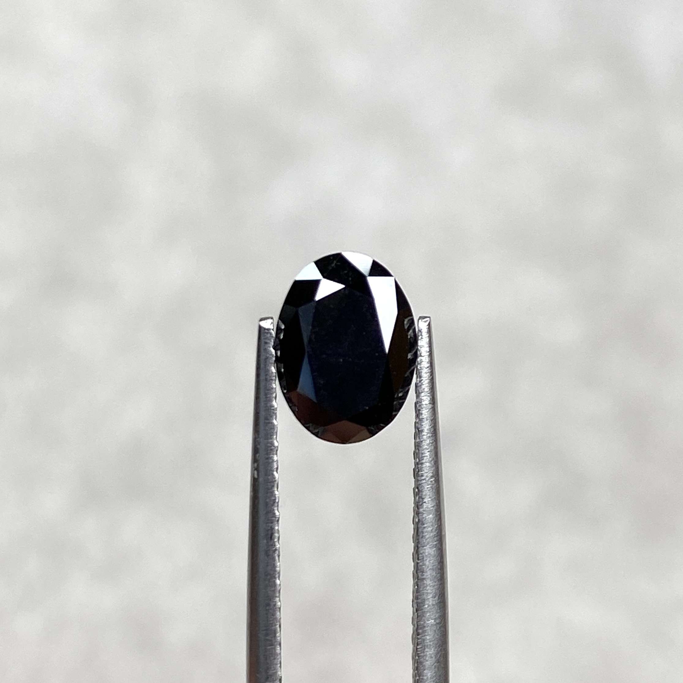 This diamond has been treated to achieve its rich, lustrous black hue, creating a deep tone that stands out beautifully in both contemporary and classic jewellery settings. The elegant oval cut enhances the stone’s visual presence with its elongated proportions, giving it a refined and flattering appearance.