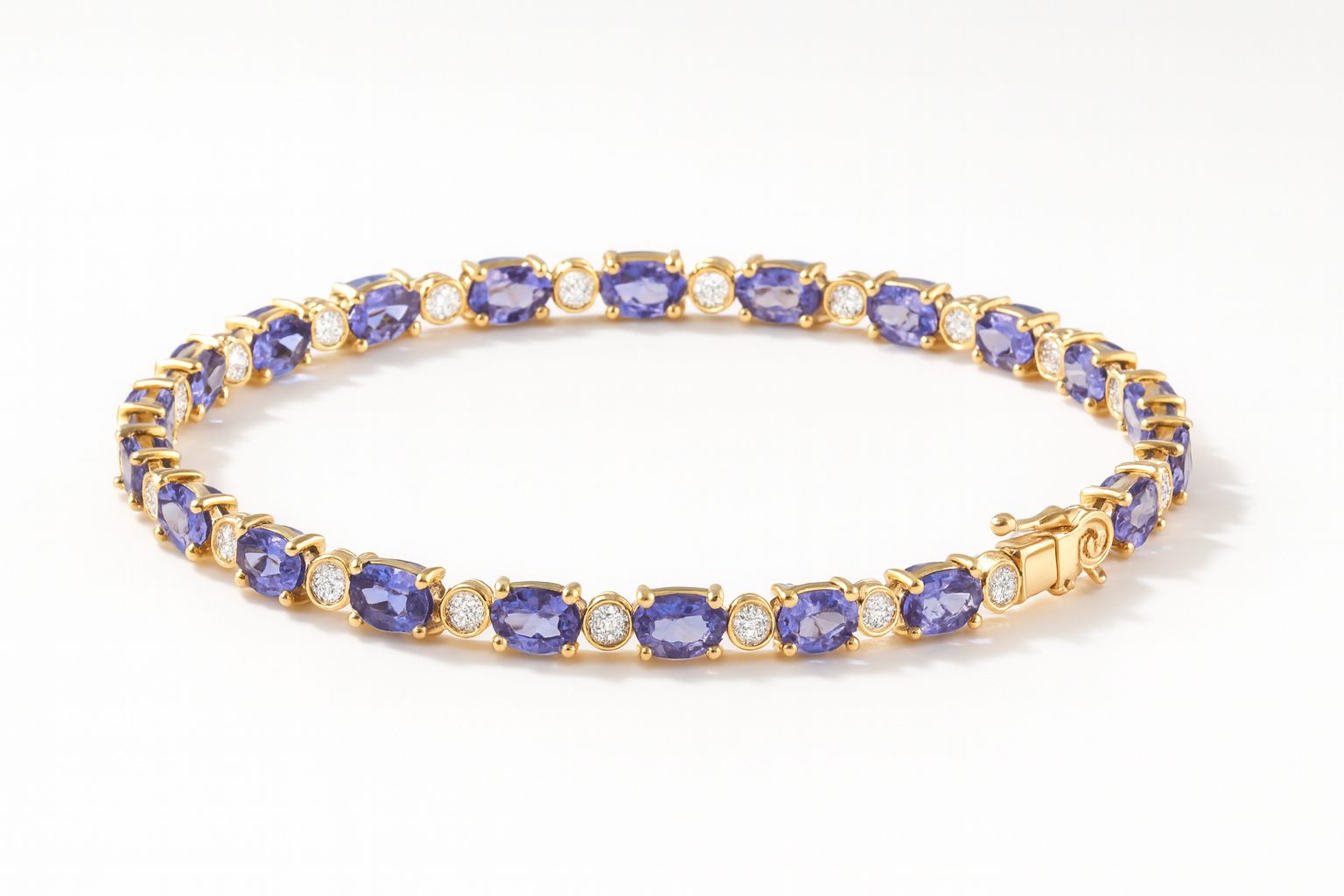 These Tennis Bracelets in luxurious 14K yellow gold are exquisite and timeless pieces, perfect for elevating any look. Set with dazzling oval-cut tanzanite and round diamond it provides a classic yet sophisticated aesthetic with options to suit various tastes and preferences.