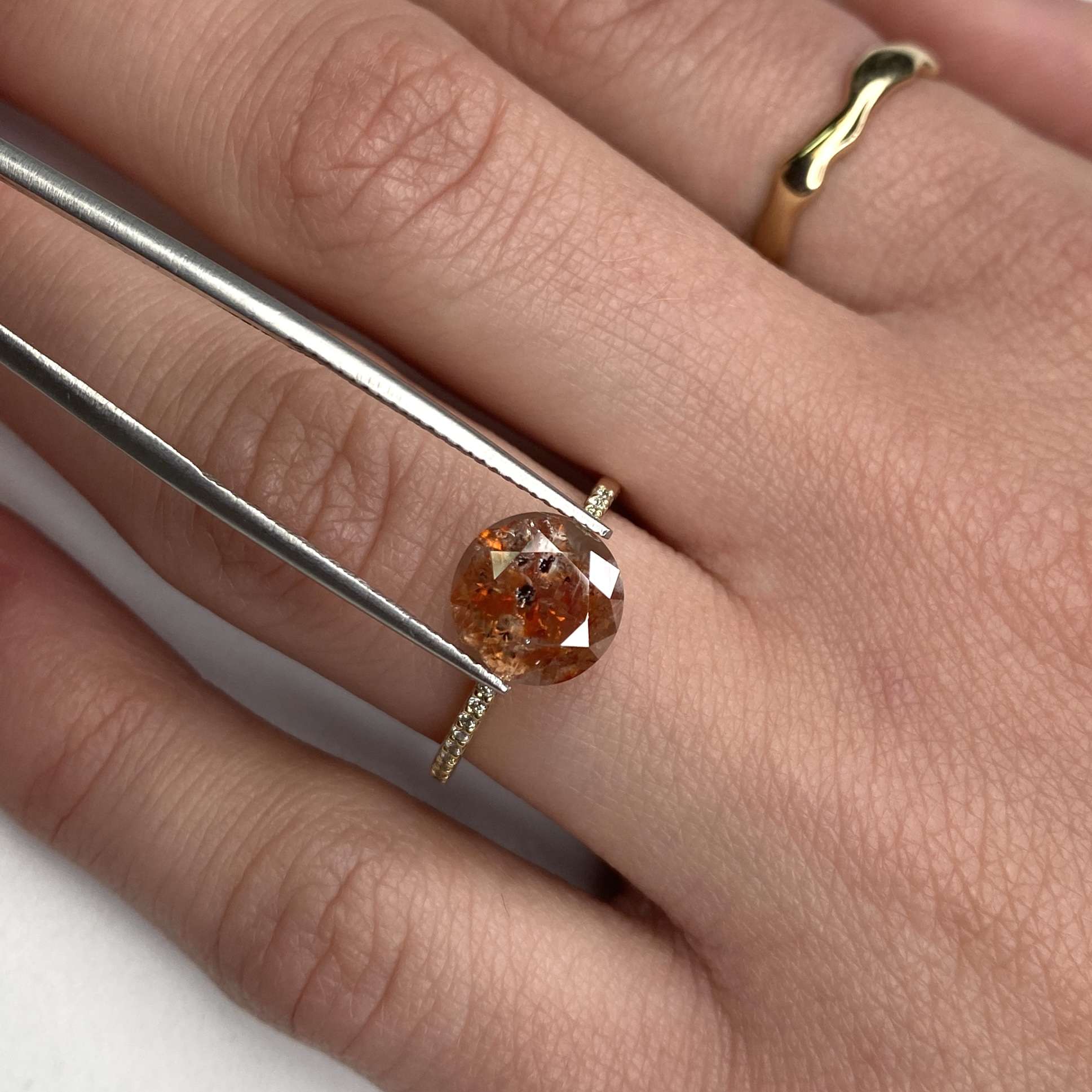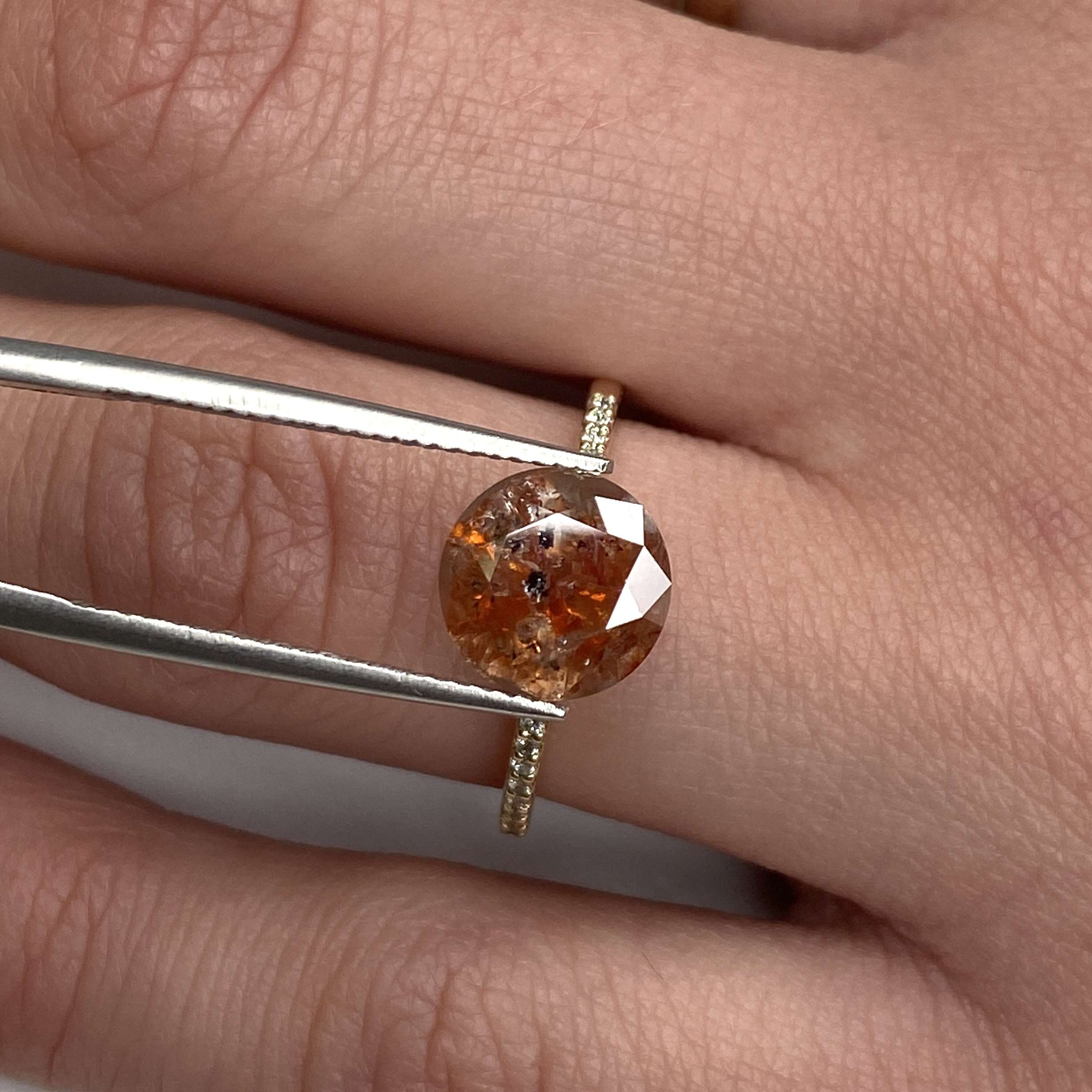 Introducing the 2.56 Ct Round Salt and Pepper Diamond—a captivating gem that combines natural beauty with individual character.