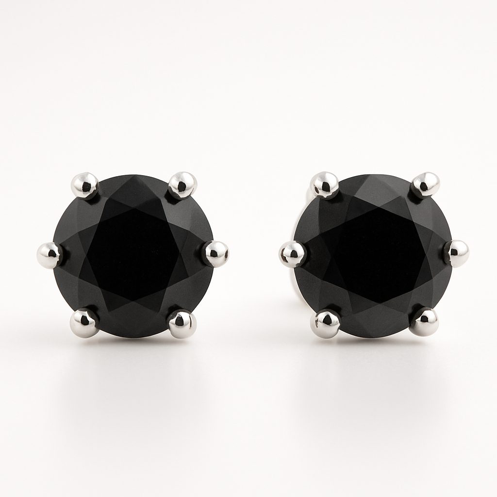 Introducing the 9k White Gold 1.26 Ct Black Diamond Studs , a striking and luxurious addition to your jewellery collection. These stunning black diamond studs, with a total weight of 1.26 Ct, are set in 9K white gold 6-claw settings, creating a captivating and eye-catching appearance that exudes elegance.