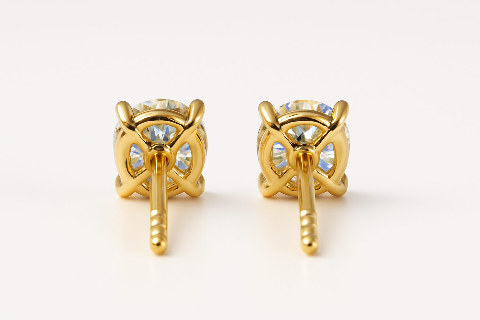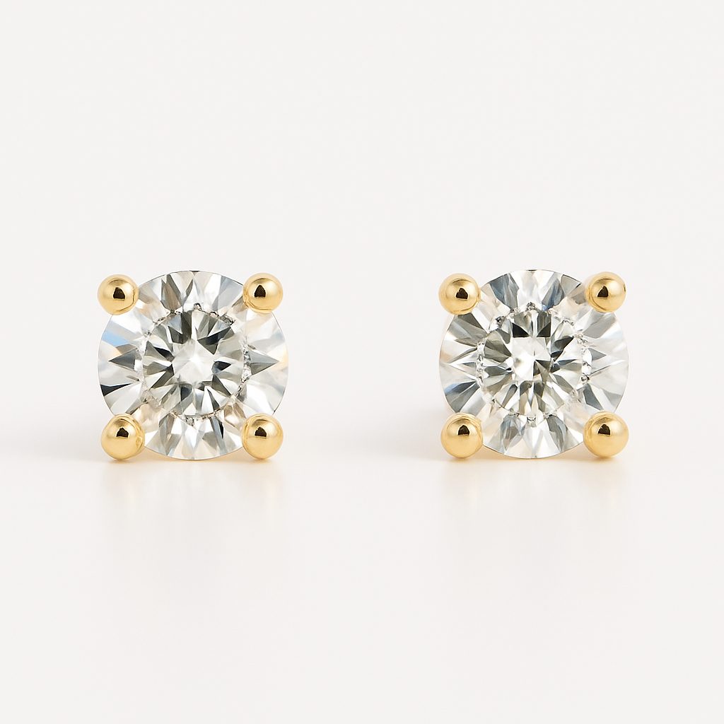 Introducing our exquisite 9k Yellow Gold 0.07 Ct Diamond Studs! Make a bold statement with our stunning 9k Yellow Gold 0.07 Ct Diamond Studs set in 9K Yellow gold. These earrings feature two exquisite round-cut diamonds with a total carat weight of 0.07 Ct, adding a touch of drama and sophistication to any outfit.