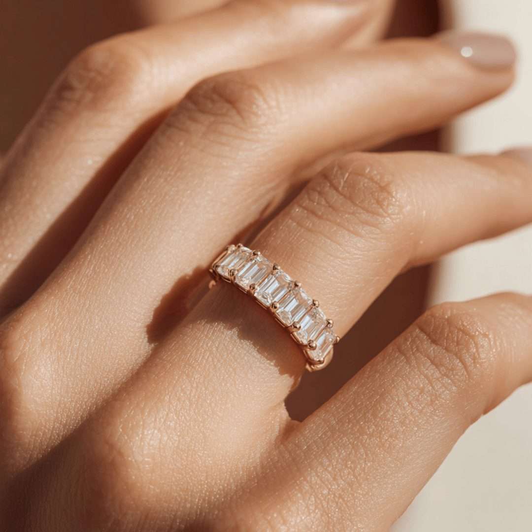 Elevate Your Elegance with the Emerald Lab-Grown Diamond Eternity Ring.