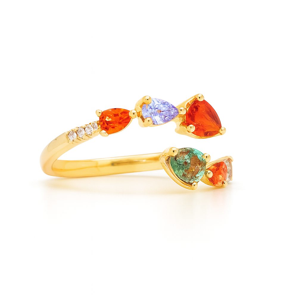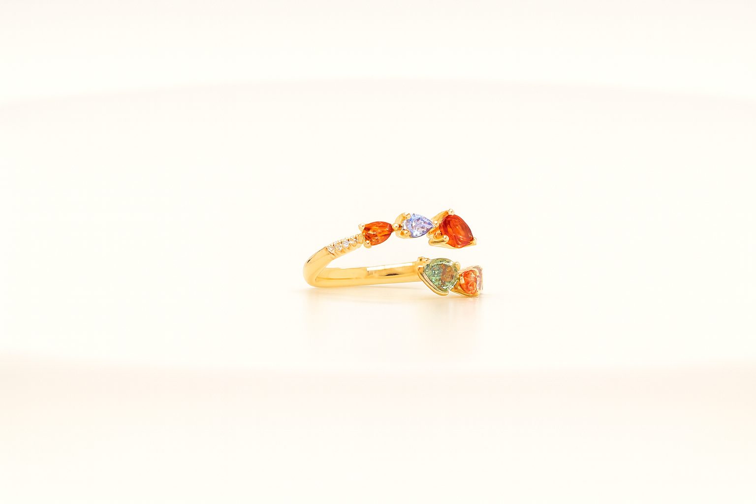 A true celebration of colour and imagination, this Multi-Coloured Sapphire Ring is a masterpiece of whimsy and elegance. Crafted in luminous 18K gold, the design features 1.42 carats of vibrant natural sapphires—each uniquely shaped and set to create a magical cascade of glowing colour. From fiery oranges to soft lilacs and serene greens, each sapphire brings its own personality, forming an ethereal spectrum that feels alive with movement and light.