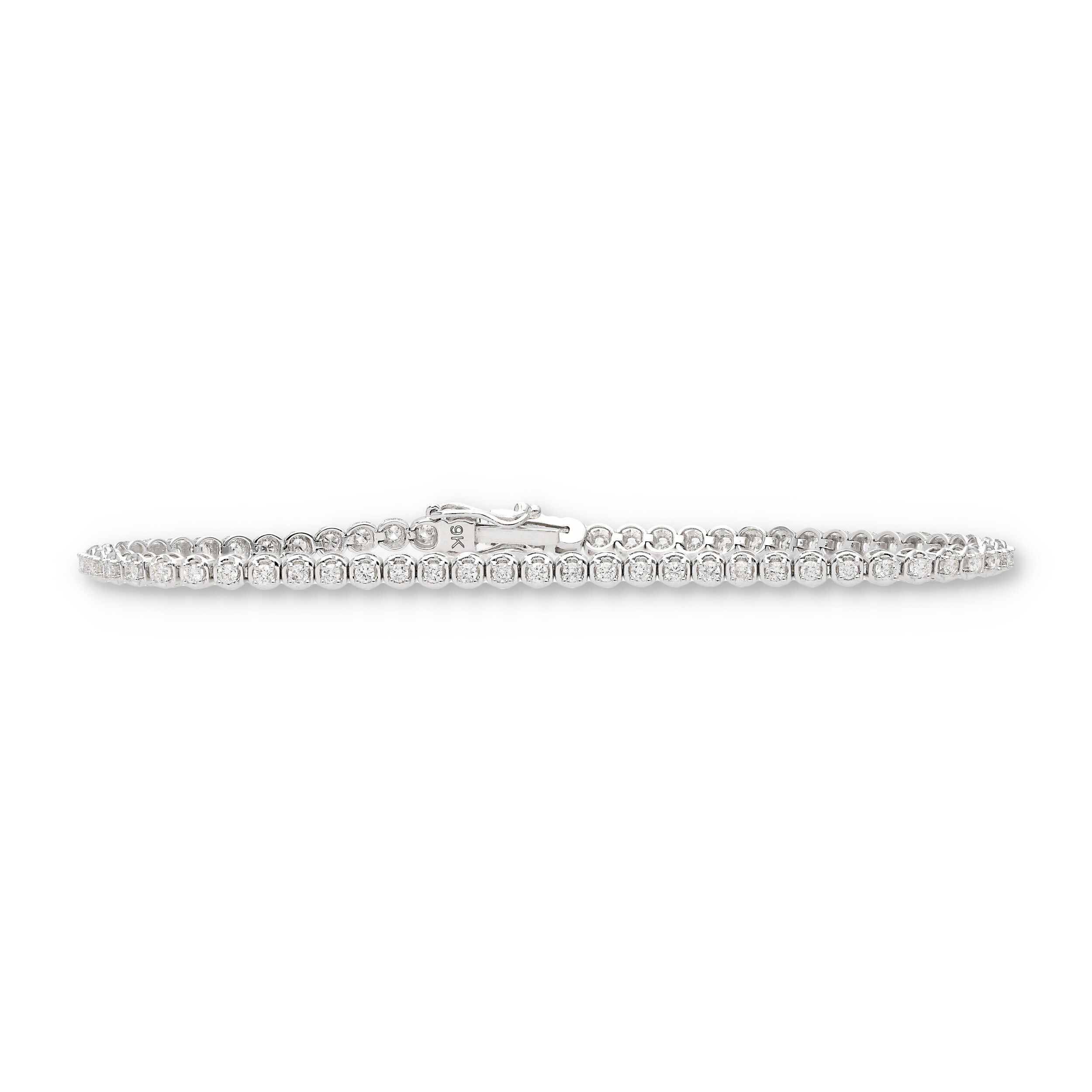 Available in either a standard illusion setting or a cupcake setting, these bracelets come in 0.50 Ct or 1.00 Ct total diamond weight. The illusion design maximises sparkle and presence, with the 1.00 Ct bracelet creating the appearance of a 5 Ct diamond tennis bracelet, delivering impressive visual impact without the additional cost.