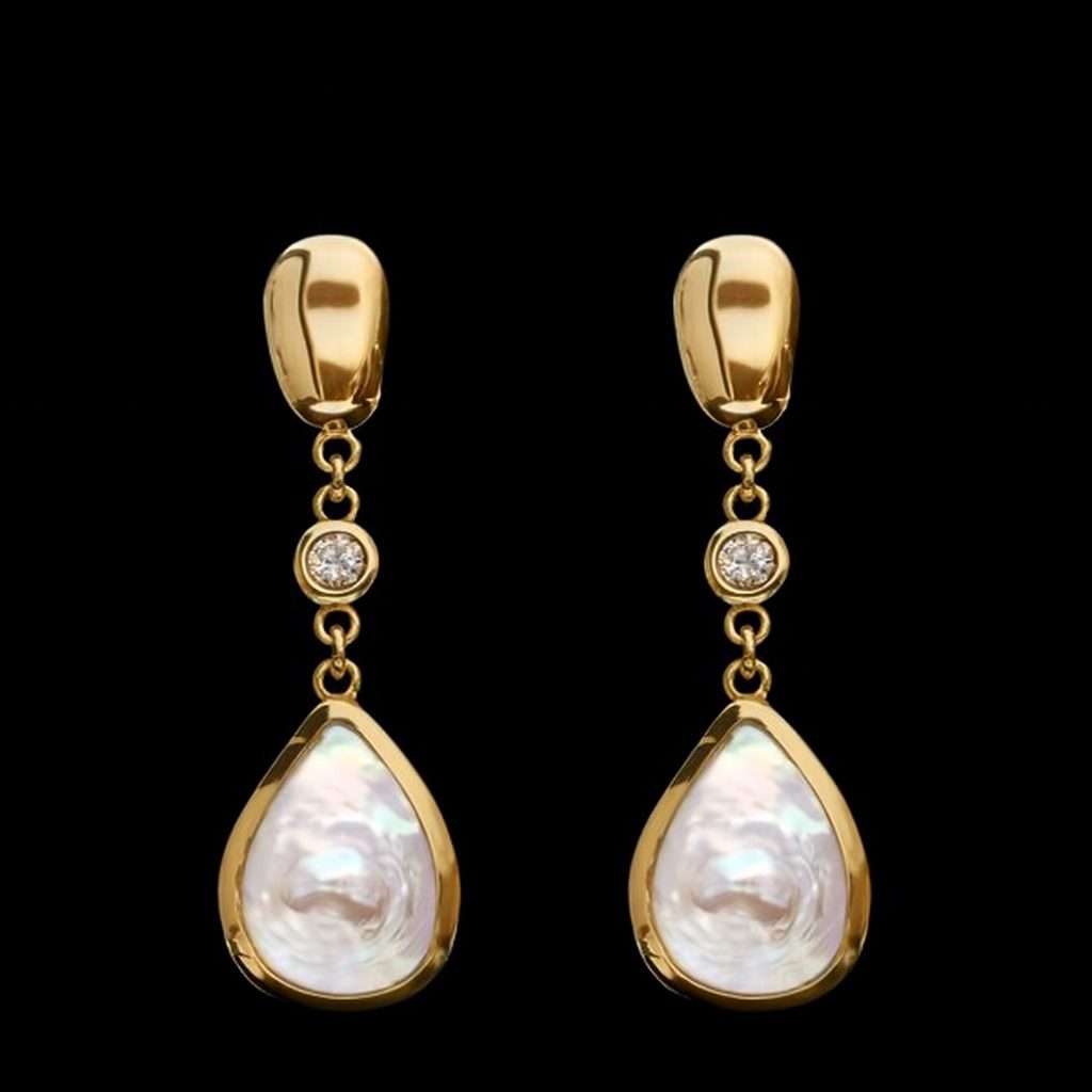 The Mae Pearl and Diamond Earrings combine modern design with fine jewellery craftsmanship, making it a meaningful addition to any jewellery collection. These diamond and pearl drop-down earrings capture natural beauty and illuminate the face for a polished, bright look. Organically shaped and playful, the 9K Gold makes a statement and adds a beautiful shine to the design.