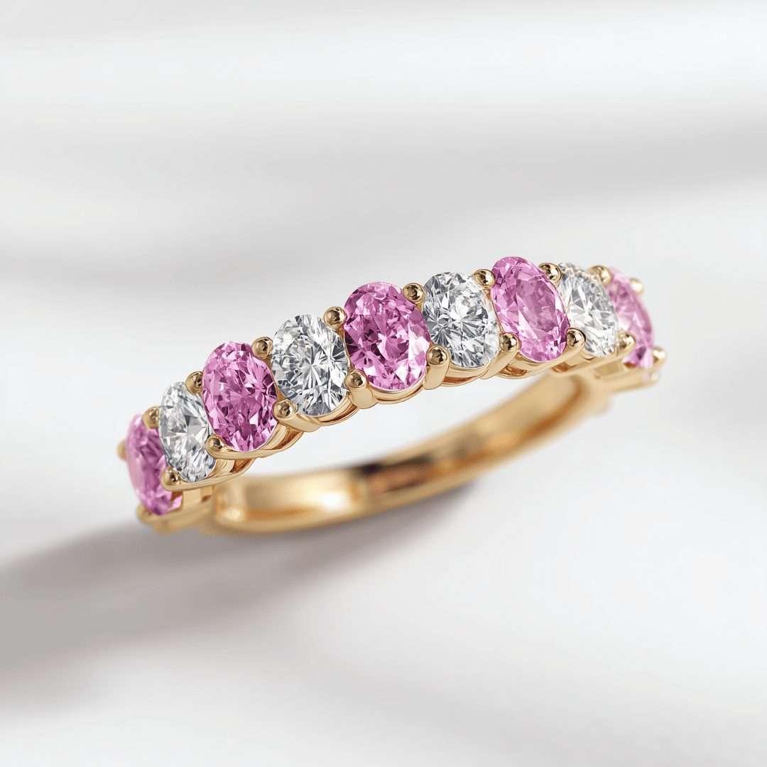 Elevate Your Style with the Oval Pink and White Lab-Grown Diamond Eternity Ring.