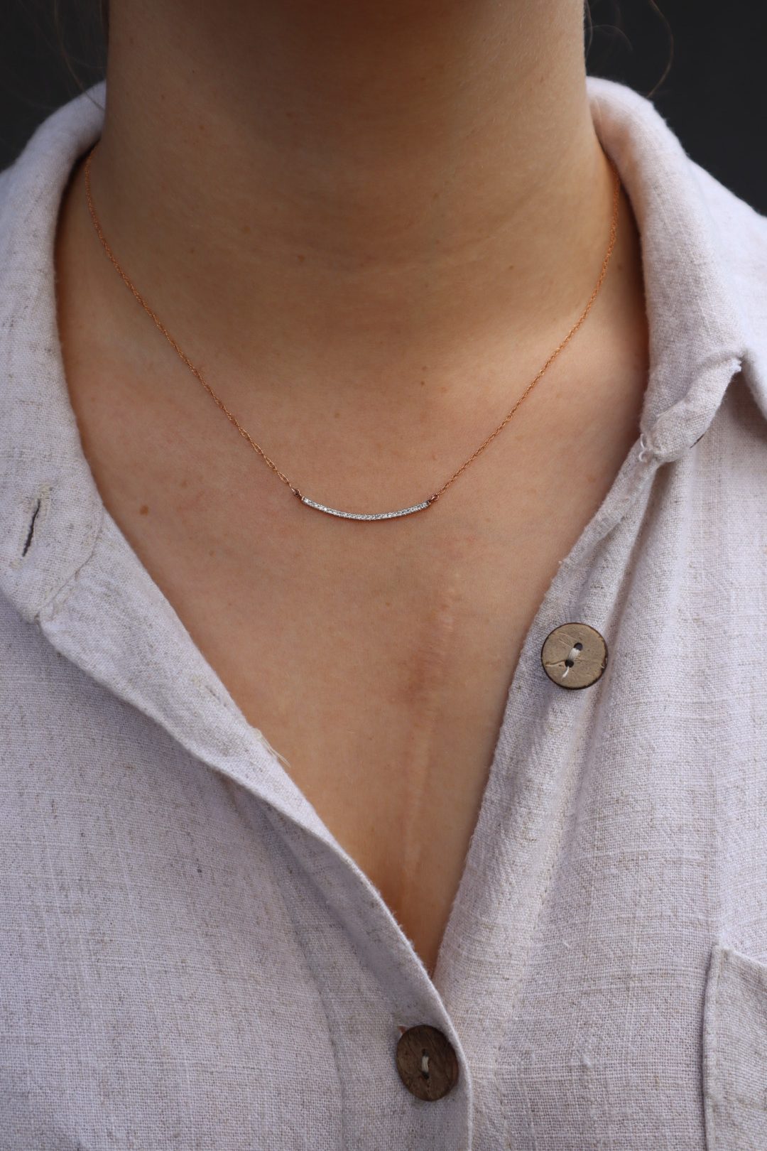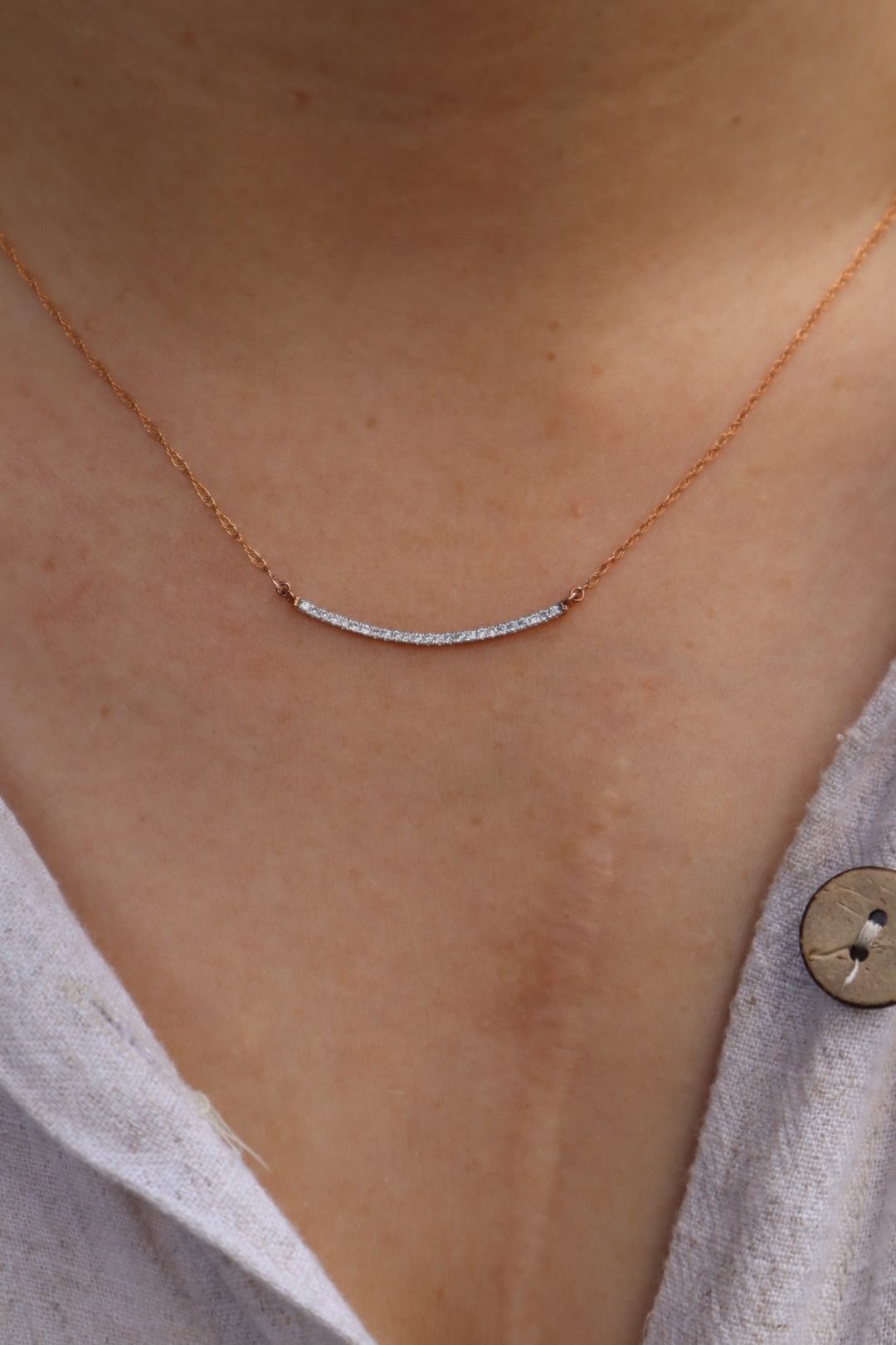 Whether worn as a delicate statement or layered for a more contemporary look, the Curved Diamond Necklace offers timeless elegance with a modern, feminine touch.