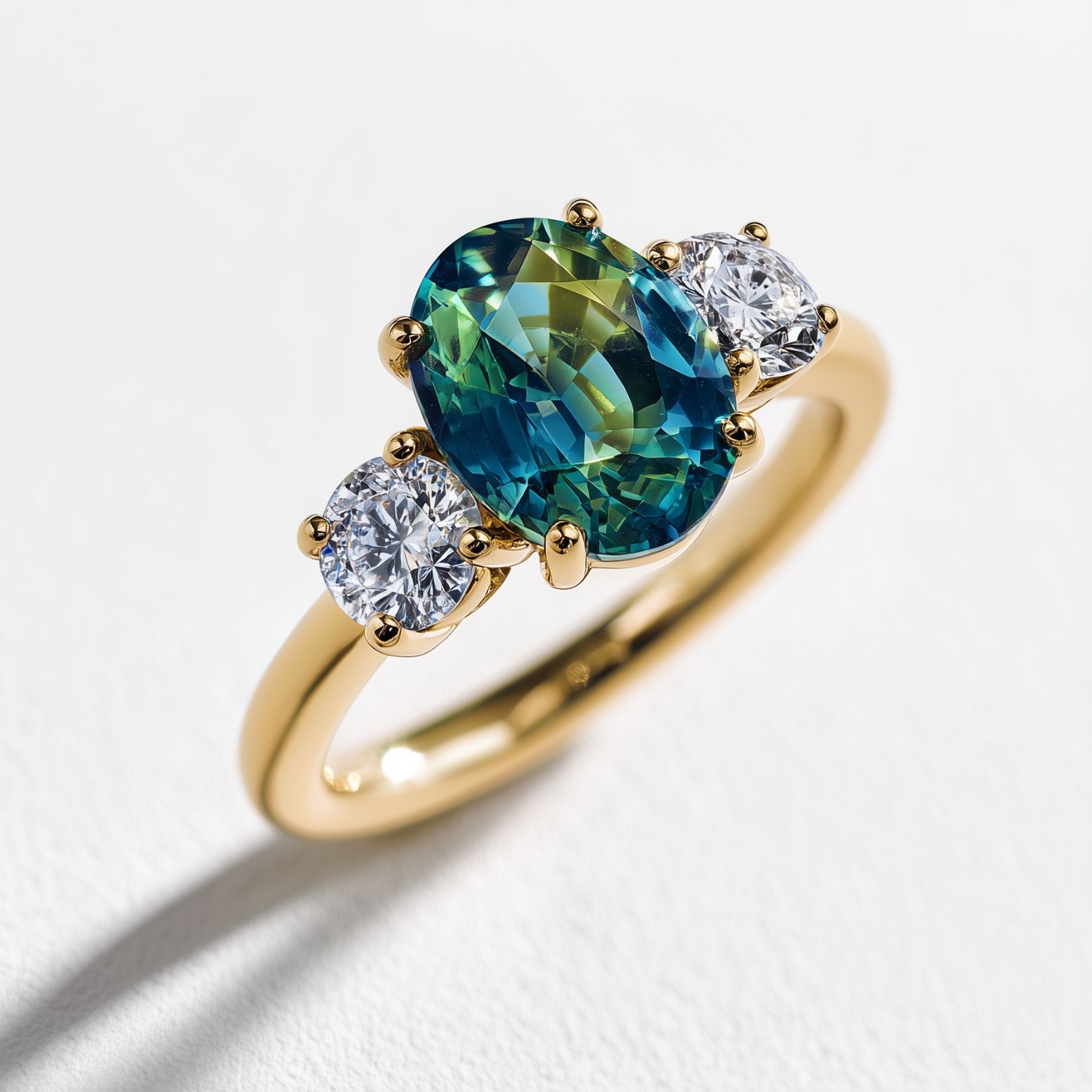 Whether it’s a special occasion or an everyday accessory, this Yellow Gold Blue-Green Sapphire Trilogy Ring is designed to elevate your style and capture hearts. It’s a testament to beauty and style, destined to become a cherished part of your fine jewellery collection.