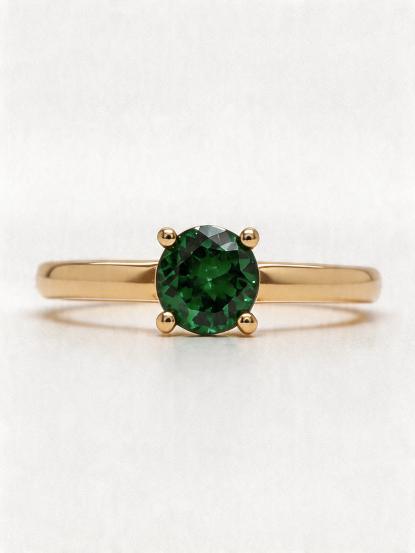 The solitaire setting is one of the most classic and enduring jewellery designs, created to highlight the beauty of a single gemstone. In this ring, the round Tsavorite takes centre stage, with the clean and refined yellow gold setting enhancing its colour and sparkle without distraction. The result is a sophisticated ring that feels both modern and timeless.